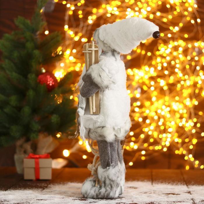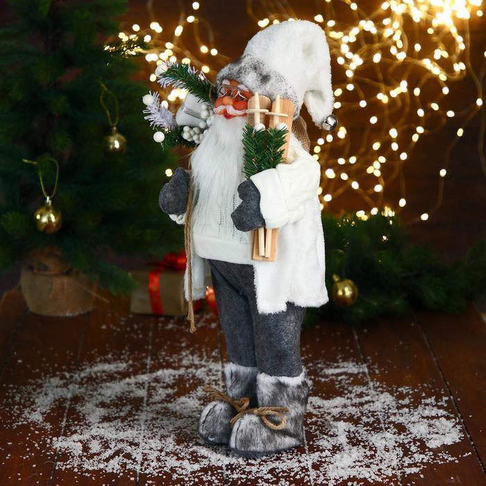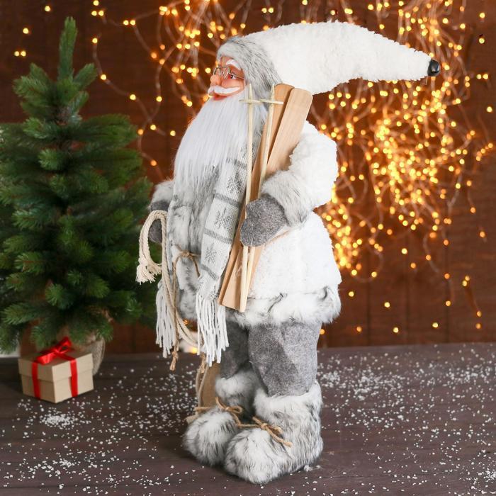 Дед Мороз под ёлку «Зимнее волшебство. В сером костюмчике с лыжами», 30 см