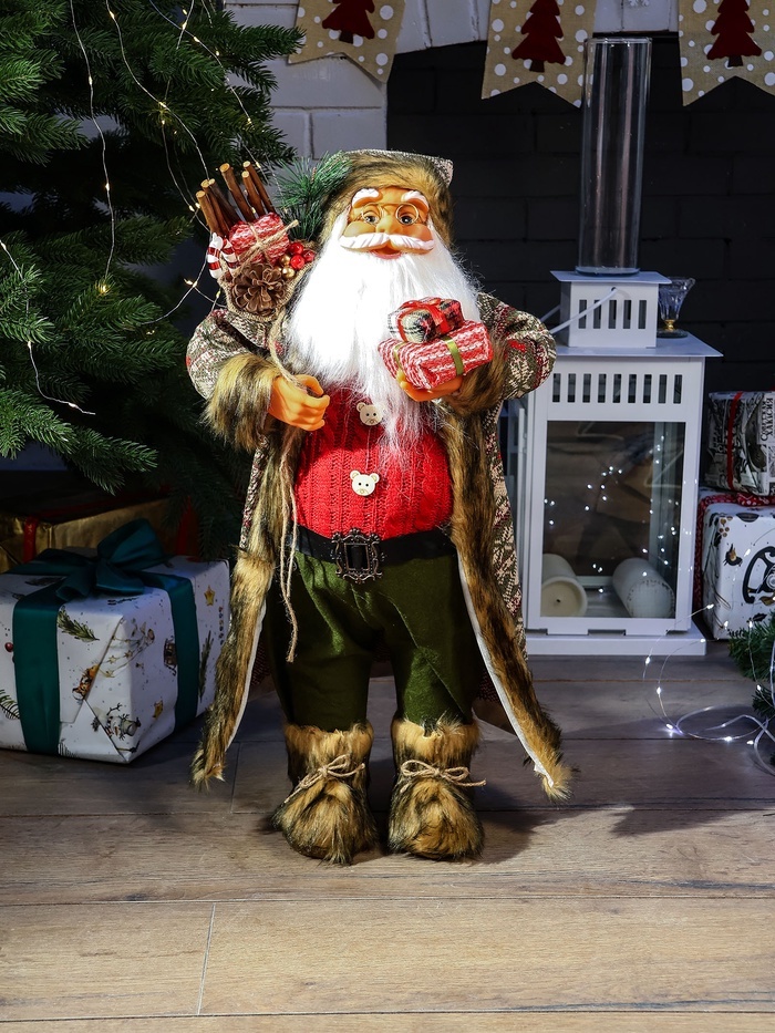 Фигурка Деда Мороза высотой 30 см станет стильным украшением новогоднего интерьера. Образ в красной шубке и колпачке с подарками отражает сочетание новогоднего барокко, скандинавского минимализма и фь... Показать описаниеюжн, создавая уютную и праздничную атмосферу без лишних деталей. Особенности * Высота 30 см подходит для размещения под ёлкой или на полке. * Отсутствие звуков и подсветки делает фигурку простой и универсальной. * Унисекс-дизайн гармонирует с разными стилями интерьера. * Комбинация классики и современных тенденций подчёркивает праздничное настроение. * Без источника питания — экологичный и надёжный декор. Праздничное настроение в деталях Эта фигурка помогает создать атмосферу зимнего волшебства, наполняя пространство теплом и традициями. Она станет частью семейных праздников, привнося ощущение уюта и радости в каждый дом.