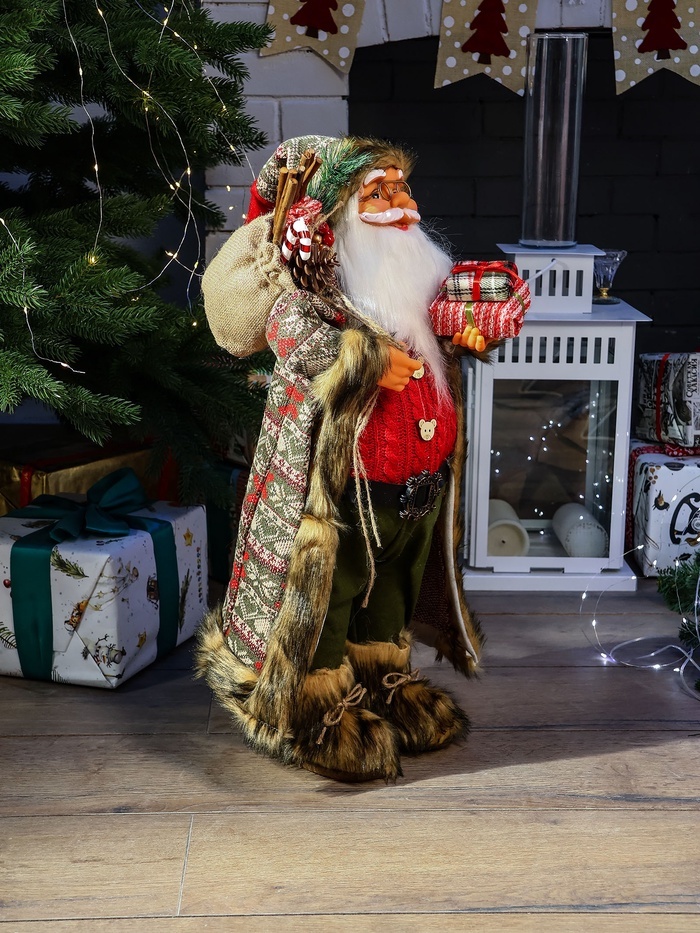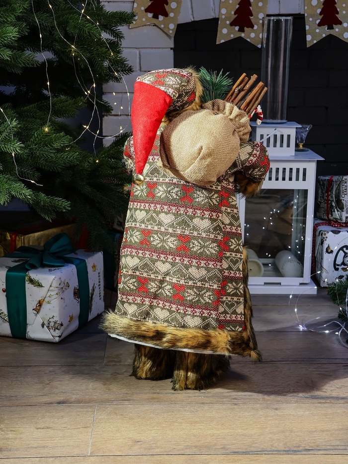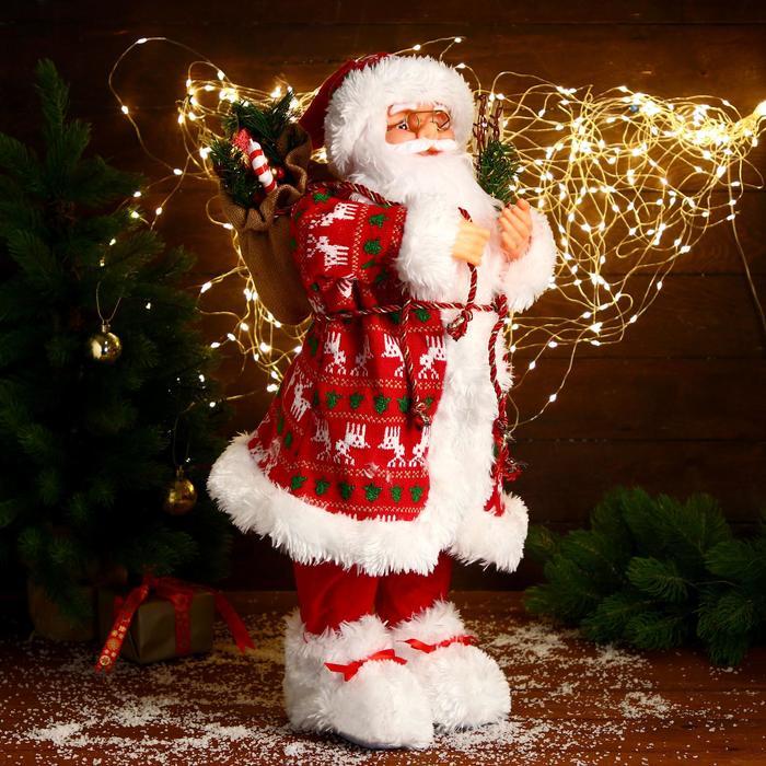 Дед Мороз под ёлку «Зимнее волшебство. В вязаном жилете, с подарками», 60 см, красный Вопросы по товару