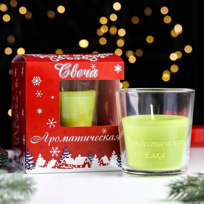 Ароматическая свеча в стакане «Рождественская ёлка», 6.5?8 см, зелёный Вопросы по товару