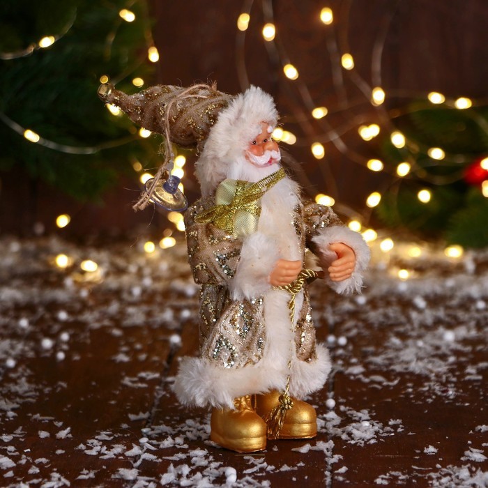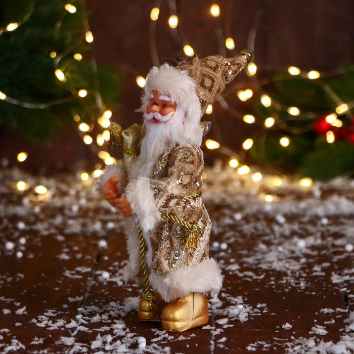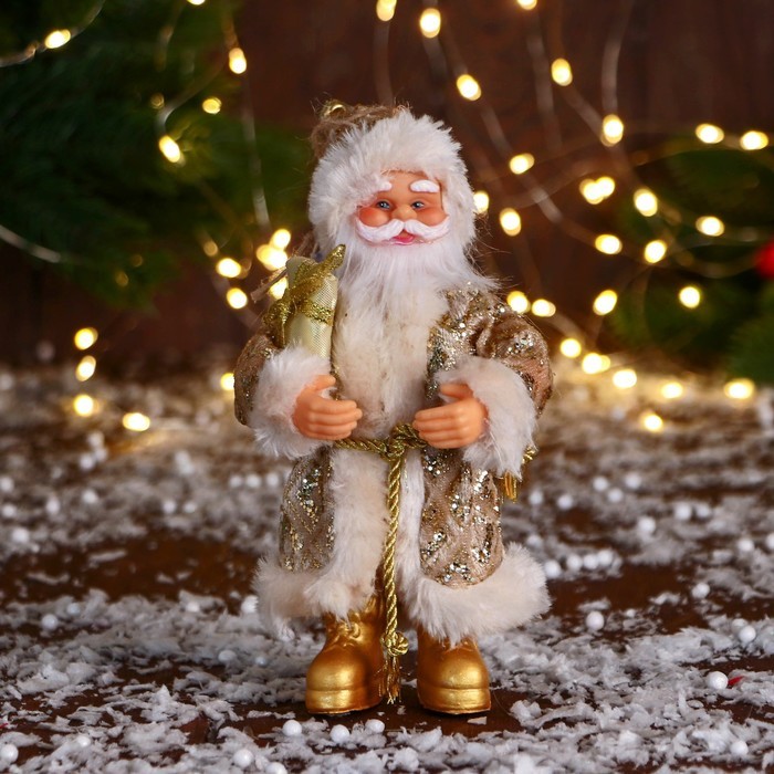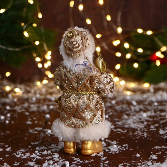 Дед Мороз под ёлку «Зимнее волшебство. В колпаке, с подарком», 17 см, золотоДед Мороз под ёлку «Зимнее волшебство. В колпаке, с подарком», 17 см, золотоДед Мороз под ёлку «Зимнее волшебство. В колпаке, с подарком», 17 см, золото