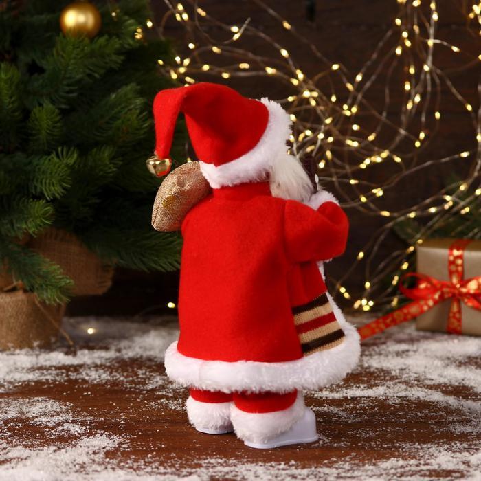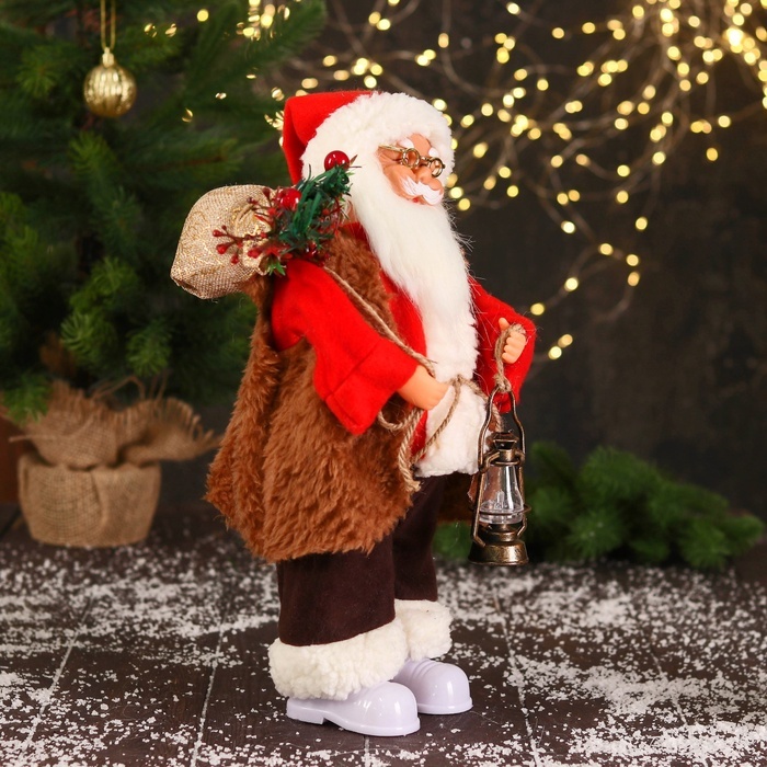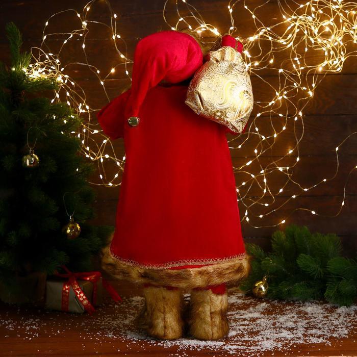 Дед Мороз под ёлку «Зимнее волшебство. В красном тулупе, с фонариком» двигается, ботинки светятся, 35 см
