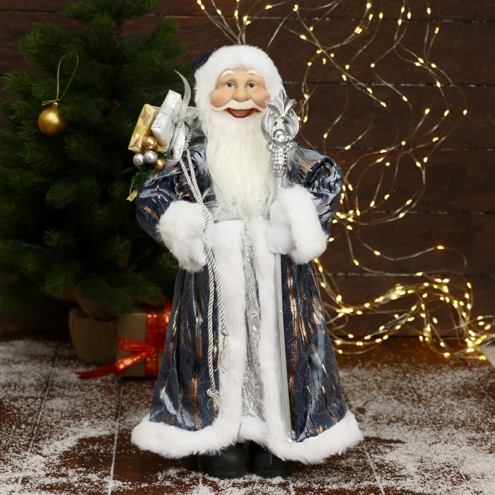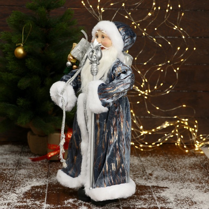 Дед Мороз под ёлку «Зимнее волшебство. В серо-синей шубе, с посохом и подарками», 45 смДед Мороз под ёлку «Зимнее волшебство. В серо-синей шубе, с посохом и подарками», 45 смДед Мороз под ёлку «Зимнее волшебство. В серо-синей шубе, с посохом и подарками», 45 см