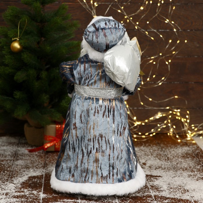 Дед Мороз под ёлку «Зимнее волшебство. В серо-синей шубе, с посохом и подарками», 45 см