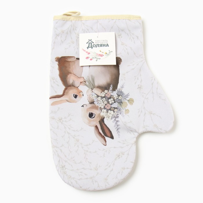 Варежка-прихватка «Доляна. Зайчата», 20?28 см, 35% хлопок, 65% п/э, ватин 250 г/м?