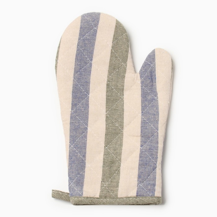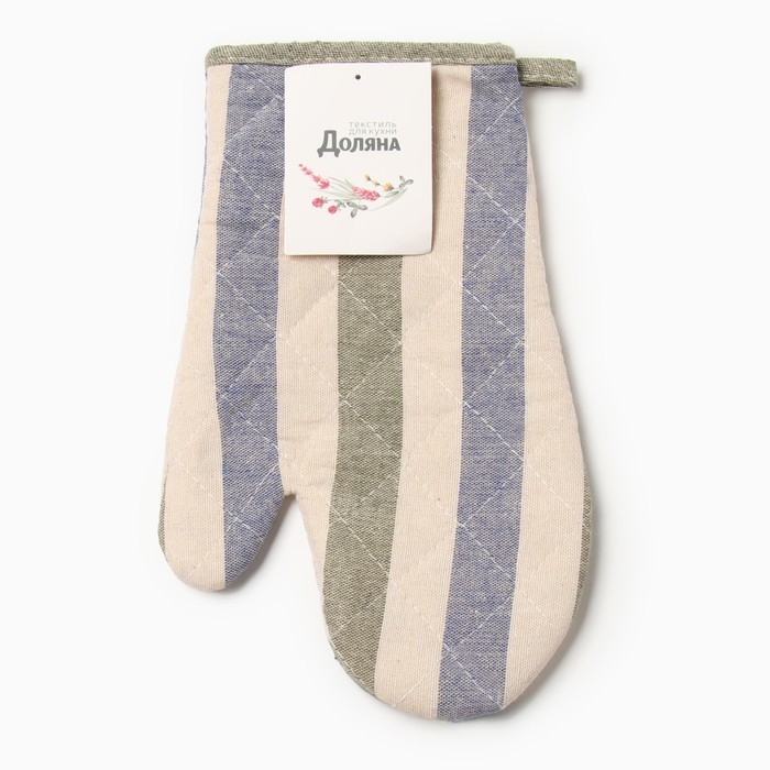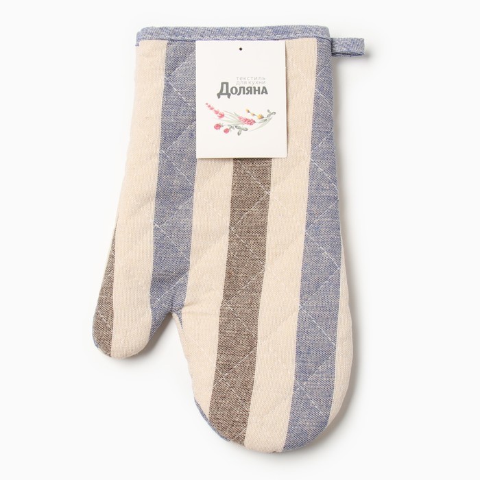 Варежка-прихватка «Доляна. Полоса», серый/синий, 28?17 см, 50% п/э, 50% хлопок