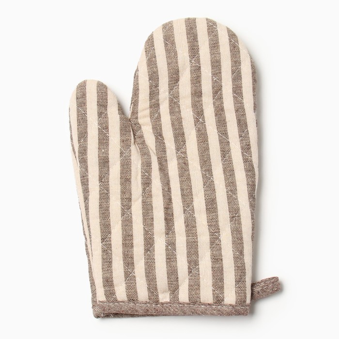 Варежка-прихватка «Доляна. Полоса», коричневая, 25?17 см, 50% п/э, 50% хлопок
