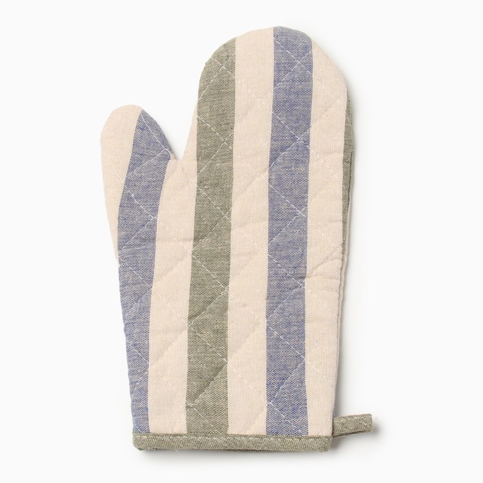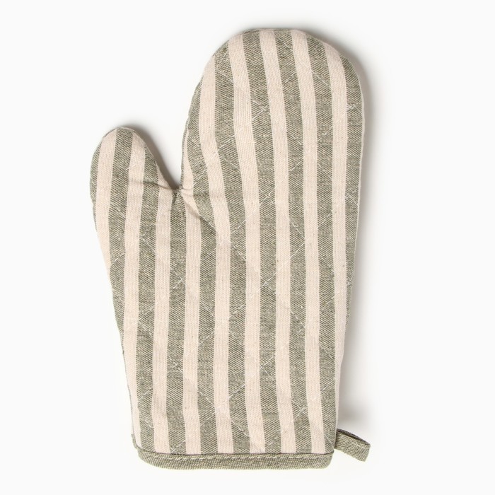 Варежка-прихватка «Доляна. Полоса», зелёная, 25?17 см, 50% п/э, 50% хлопок