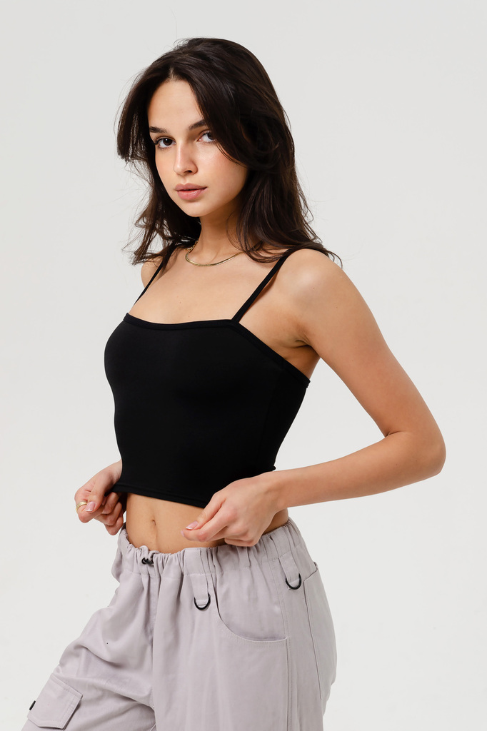 Кроп F-топ-бандо-3 спортивный домашний на тонких бретельках Вопросы по товару