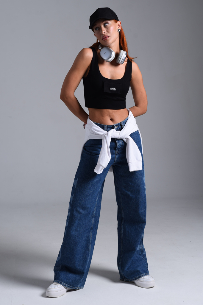 Кроп F-топ-бандо-3 спортивный домашний на тонких бретельках