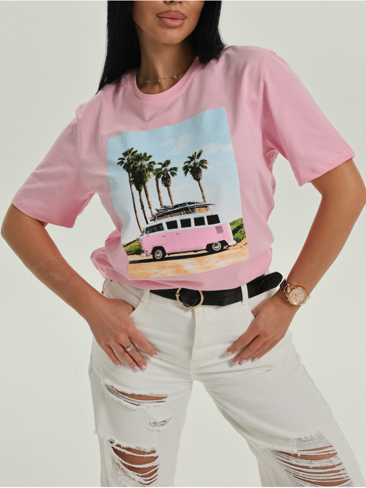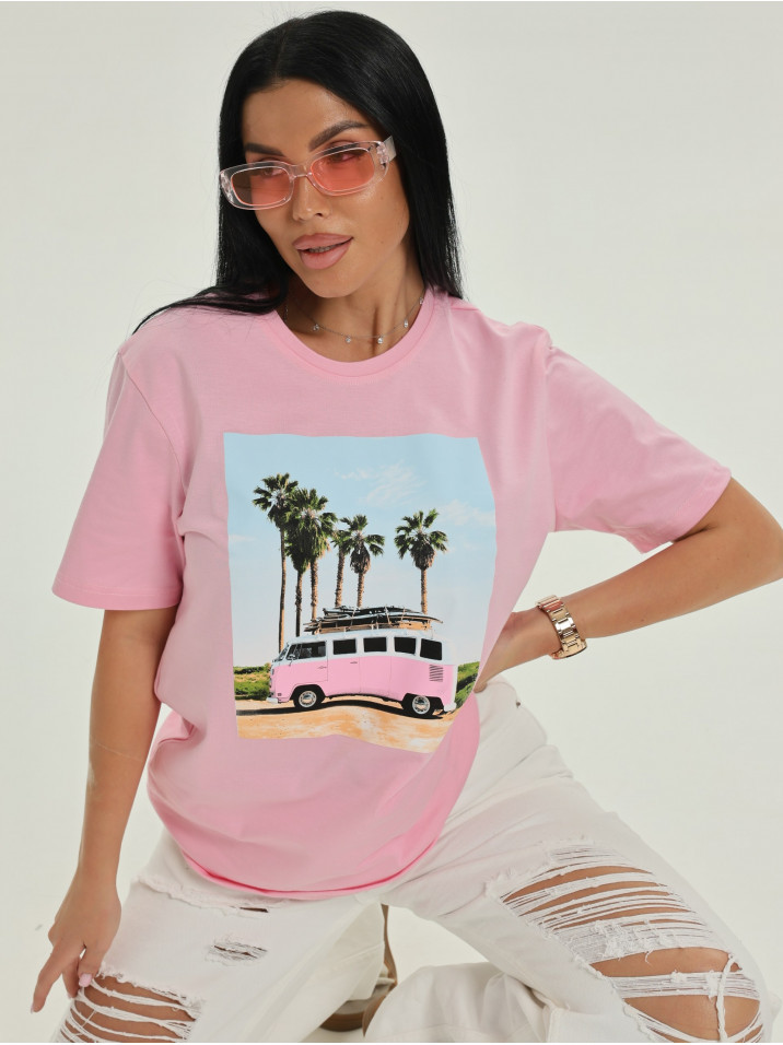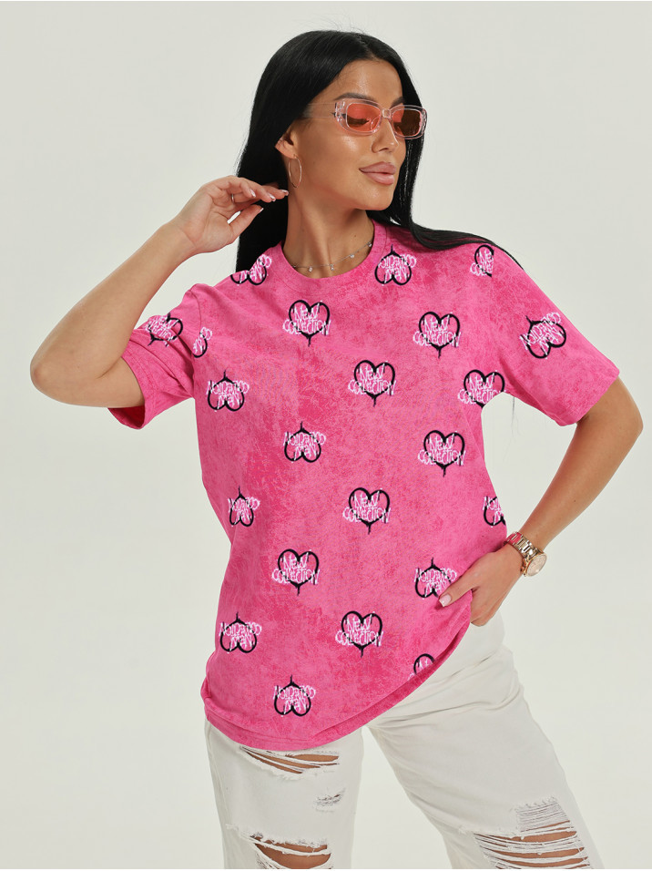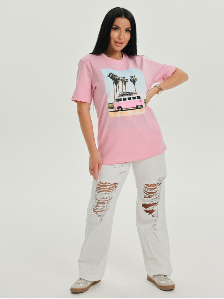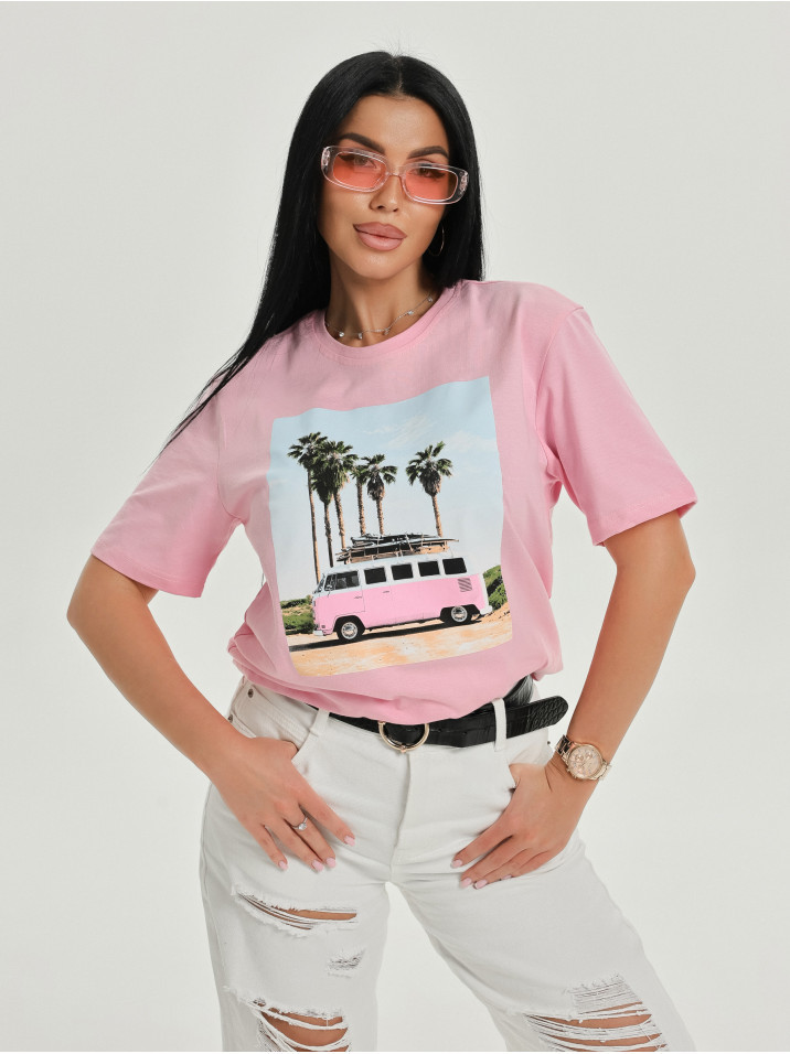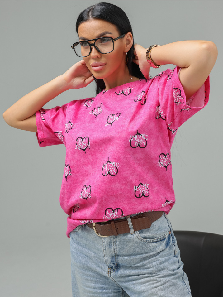 Футболка "Принт" Розовый женскаяФутболка "Принт" Розовый женскаяФутболка "Принт" Розовый женская