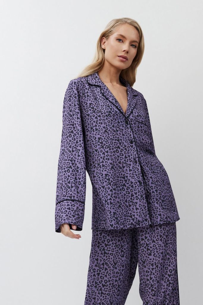 Представляем вашему вниманию длинную пижаму Beatrich — воплощение безумной мечты. Изготовлена из лёгкой вискозы с шикарным серым леопардовым принтом. Рубашка на пуговицах с короткими рукавами, манжета... Показать описаниеми и V-образным вырезом. В сочетании с брюками в тон с обычным поясом, украшенным коричневой лентой и боковыми манжетами, этот комплект излучает необузданное очарование. Дайте волю своему воображению в нашей длинной пижаме Beatrich, которая идеально подойдёт тем, кто не боится мечтать.