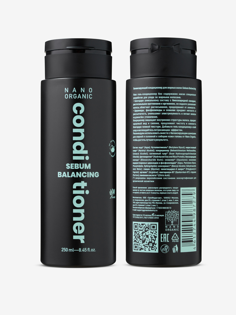 Наш гель-кондиционер без содержания масел специально разработан для ухода за жирными волосами. • Благодаря уникальному составу с биосахаридной камедью, растительными протеинами и аргинином, он надолго... Показать описание увлажняет волосы, облегчает расчесывание, предохраняет от ломкости. • Церамиды, фосфолипиды и сквалан придают мягкость и рассыпчатость, уменьшают электризуемость и питают волосы по длине без утяжеления. Кондиционер защищает внутренние структуры волоса, придает здоровый вид и сияние, продлевает чистоту и свежесть благодаря гелевой текстуре. Добавьте гель-кондиционер в свой уход и наслаждайтесь потрясающим эффектом. Рекомендуем использовать вместе с балансирующим шампунем для жирной и склонной к себорее кожи головы от Nano Organic, чтобы достичь лучшего результата. Способ применения: равномерно распределить кондиционер по чистым влажным волосам, отступая пару см от корней, оставить на 2-3 минуты, хорошо смыть водой.