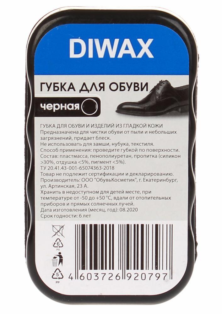 Цвет: черный. Состав: пластмасса, пенополиуретан, пропитка (силикон, отдушка). Страна бренда: Россия. Страна-изготовитель: Россия. Комплектация: Крем для обуви. Длина: 9 см. Ширина: 5 см см. Описание ... Показать описаниетовара. ГУБКА ДЛЯ ОБУВИ И ИЗДЕЛИЙ ИЗ ГЛАДКОЙ КОЖИ. Предназначена для чистки обуви от пыли и небольших загрязнений, придает блеск. СПОСОБ ПРИМЕНЕНИЯ: проведите губкой по поверхности. Подробное описание: https://prtobuv.ru/product/12898-5118-diwax-gubka-dlya-obuvi-chernaya/