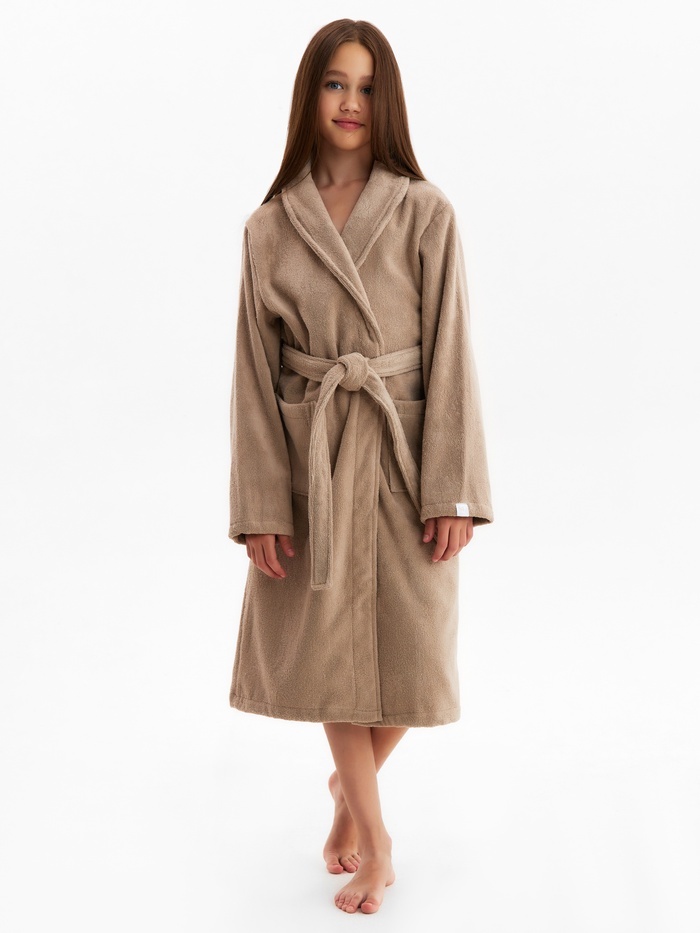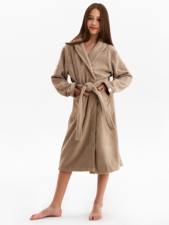 Халат махровый детский Этель Follow me, размер 34 (122-128 см), бежевыйВопросы по товару