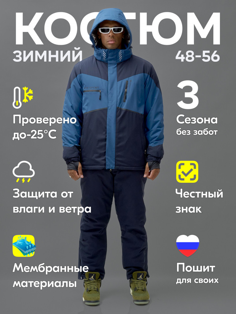 Горнолыжный костюм мужской зимний синего цвета 372SВопросы по товару