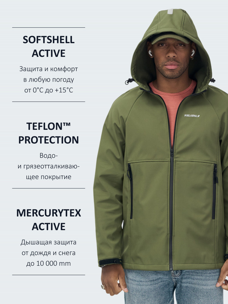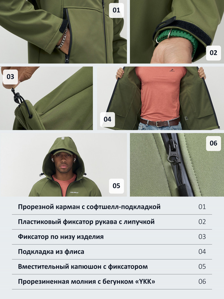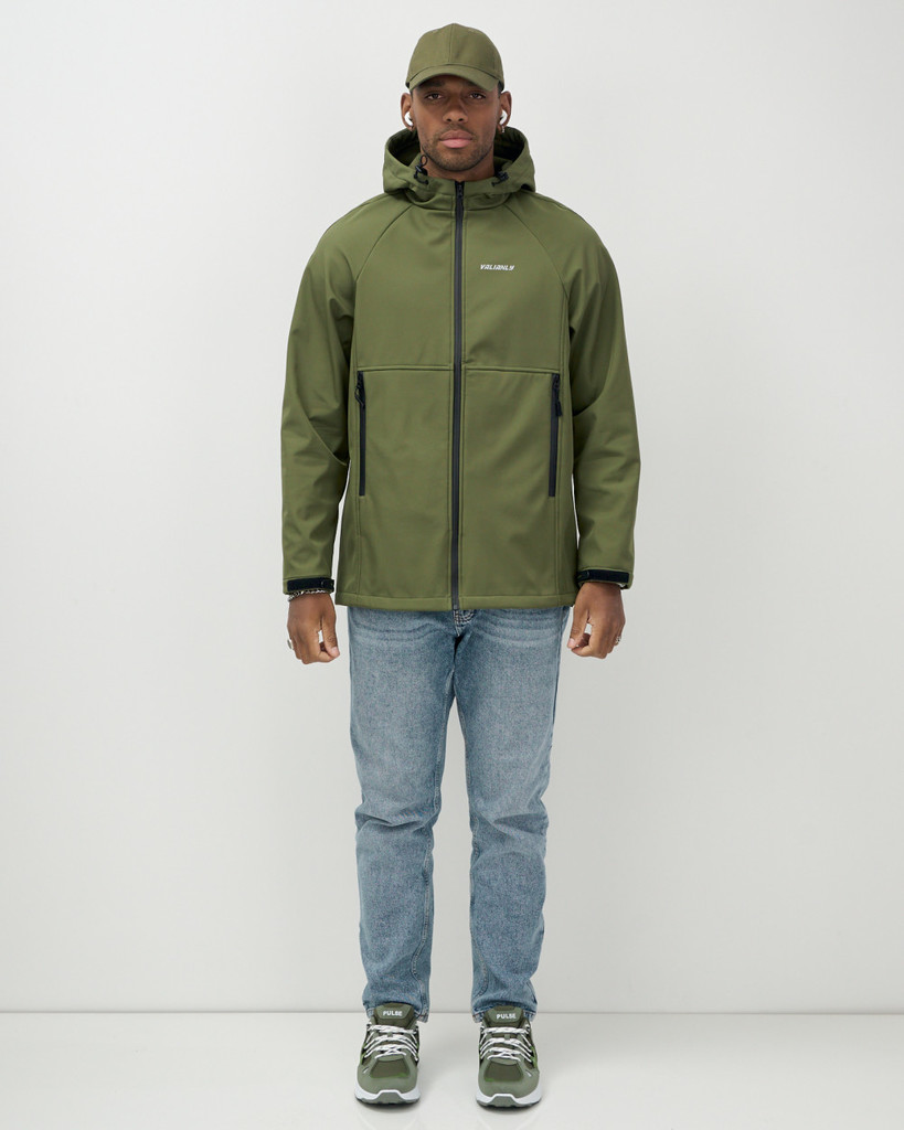 Ветровка спортивная мужская с капюшоном softshell цвета хаки 9563KhВопросы по товару