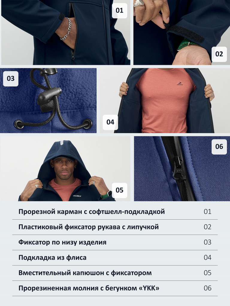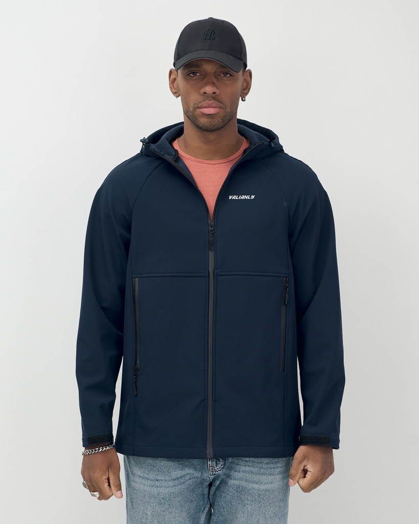 Ветровка спортивная мужская с капюшоном softshell темно-синего цвета 9563TSВопросы по товару