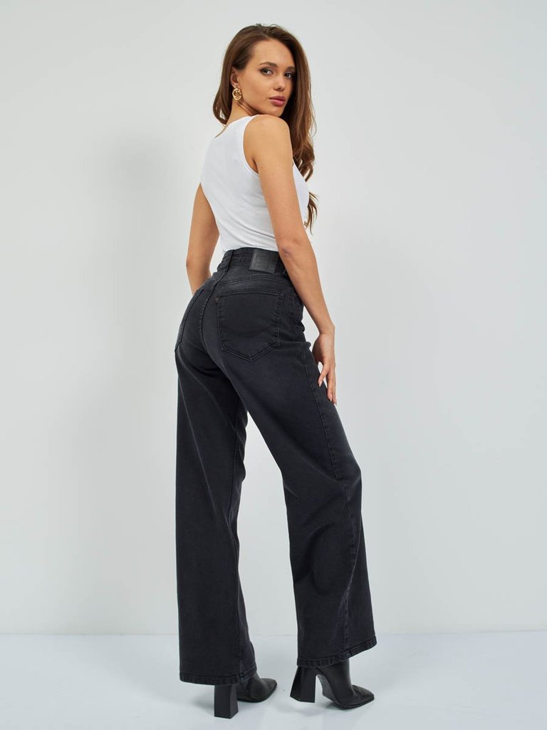 Цвет: стирка темная Состав: 99%Хлопок, 1%Эластан Материал: Black denim 006 str. Вес материала: 12.7 Фит: Baggy fit Талия спереди: высокая Талия сзади: высокая Ширина колена: 27,5см Ширина низа: 27,5см... Показать описание ID: 233520 Описание Женские модные джинсы с пятью карманами. Посадка Baggy fit , высокая талия спереди и сзади, широкие штанины по всей длине. для лучшего облегания в области бедер под передними карманами сделана вытачка. Застежка на молнии. Выполнены из эластичной ткани denim stretch, цвет ткани Black/Black (лицевая и изнаночная стороны ткани черные). Классическая темная стирка со слабовыраженными потёртостями спереди и сзади. Рекомендации по уходу * * * * * Стирать в стиральной машине при температуре 30° Не использовать отбеливатель Ручная стирка при температуре 30° Гладить при минимальной температуре Химчистка недопустима