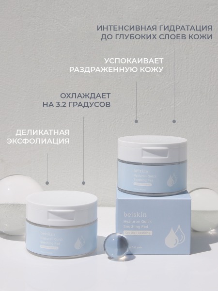 Beiskin Успокаивающие пэды с гиалуроном hyaluron quick soothing pad 170ml / 80 штук