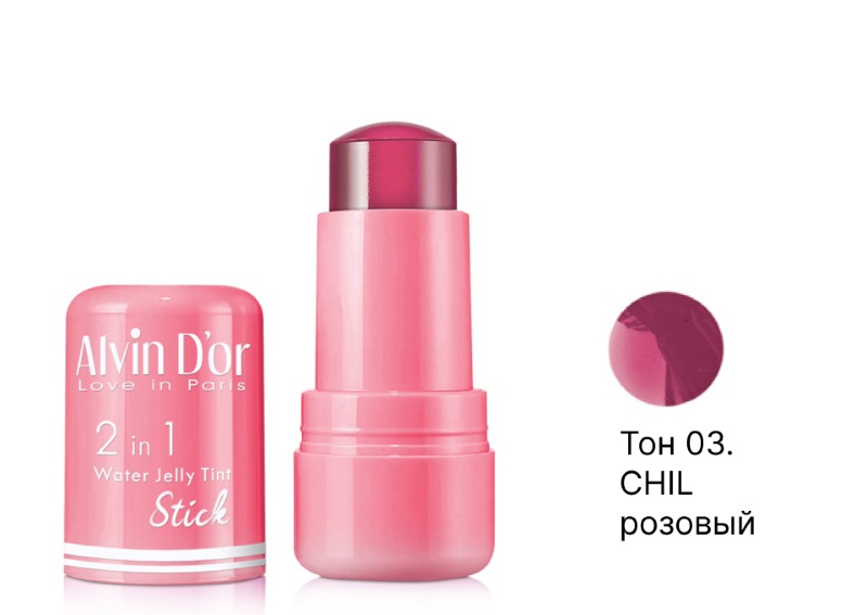 Alvin D`or Стойкий тинт 2 в 1 для губ и щек AD-59 в стике water jelly tint, т.03 розовый