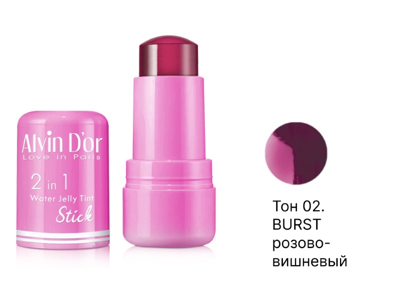 Alvin D`or Стойкий тинт 2 в 1 для губ и щек AD-59 в стике water jelly tint, т.02 розово-вишневый