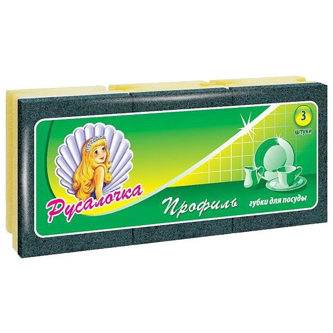 Губки для посуды профильная Русалочка 3 шт подходят для удаления даже самых стойких и въевшихся загрязнений с поверхности различной кухонной утвари: кастрюль, сковород, изготовленных из прочных, надеж... Показать описаниеных стали и алюминия высокого качества. Изделия изготовлены из гладкого поролона. Они имеют дополнительный абразивный слой-полосу, который хорошо очищает загрязнения, но не травмирующую при этом поверхность. Фигурный вырез по боковым сторонам гарантирует надежный хват и удобное удерживание даже в мокром виде или намыленном состоянии, за счет чего губки станут незаменимыми помощниками в любых хозяйственных делах по наведению чистоты. Они подходят для мытья посуды, раковин,плит и других поверхностей.