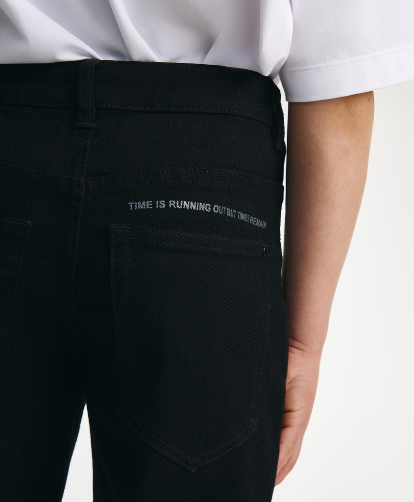 Черные джинсы прямого кроя– универсальная модель, которая легко впишется и в повседневный, и в школьный гардероб мальчика. Джинсы выполнены из прочного и плотного хлопкового денима с эластаном. Специа... Показать описаниельная варка создала смягчающий эффект, наделив изделие легкой, еле заметной потертостью на швах, не препятствующей созданию образов в соответствии с школьным дресс-кодом. Пять стандартных карманов делают модель практичной и функциональной. Небольшой шрифтовой принт на задней части добавляет джинсам современный акцент. Джинсы прекрасно смотрятся с трикотажным пиджаком, рубашкой, любыми вязаными плечевыми изделиями, создавая комфортные для ребенка комплекты на каждый день.