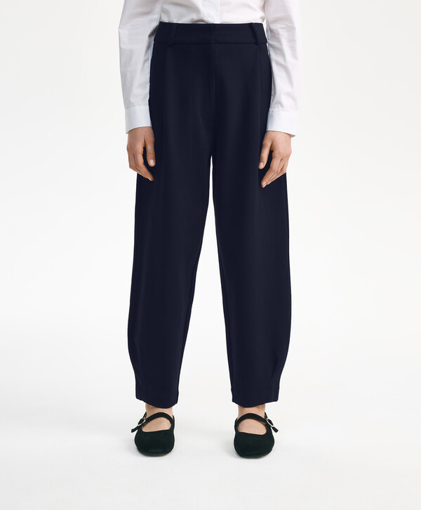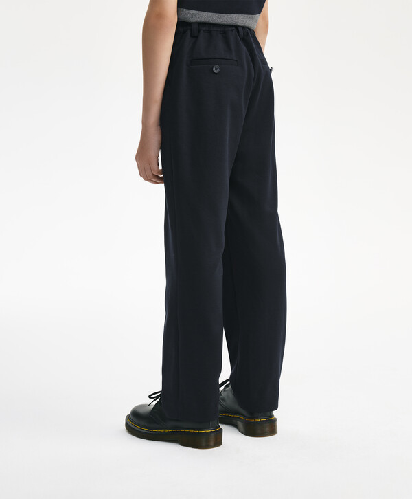 Синие трикотажные брюки-слоучи (от англ. slouchy - свободные, мешковатые) — трендовый элемент школьного гардероба! Брюки выполнены из мягкого формоустойчивого джерси на основе вискозы, имеющего гладку... Показать описаниею матовую поверхность, очень приятную при тактильном контакте. Высокая посадка, характерная форма с сильным заужением к низу, подобная бананам, создают остроту в восприятии вещи. Брюки имеют карманы в боковых швах, необходимые для комфортной эксплуатации. Пояс с внутренней регулировкой объема поможет настроить посадку изделия по фигуре. Брюки застегиваются на молнию, потайной крючок и внутреннюю пуговицу. Шлевки на поясе позволят дополнить брюки поясным аксессуаром. Школьные брюки-слоучи прекрасно сочетаются с классическими и укороченными блузками, с любыми трикотажными и вязаными изделиями, с жилетами и жакетами силуэта оверсайз, с лонгсливами свободного кроя, создавая острые модные школьные образы и не только. 68% вискоза,28% нейлон,4% эластан