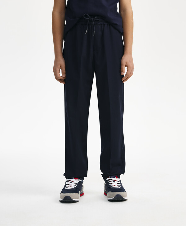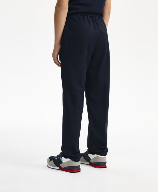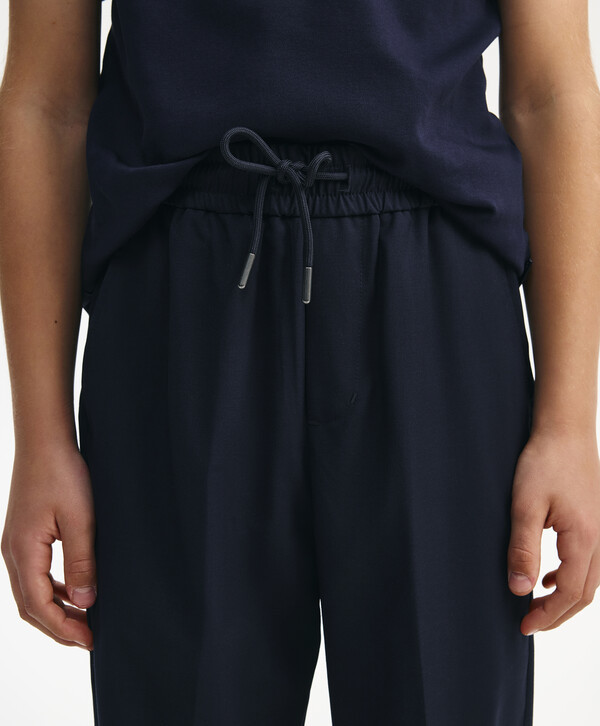 Синие брюки c поясом на резинке и шнурком – модная и комфортная модель школьного гардероба, олицетворение актуального стиля смарт кэжуал(smart casual). Брюки выполнены из гладкой костюмной ткани с доб... Показать описаниеавлением натуральной шерсти. Она делает брюки красивыми и пластичными, хорошо держащими форму, не требующими кропотливого ухода. Школьные брюки имеют прямую, чуть зауженную к низу форму. Манжеты придают модели законченный вид. Карманы со скосами на передней части способствуют удобной эксплуатации. Брюки станут универсальной основой для множества школьных и повседневных образов, гармонично сочетаясь с лонгсливами, водолазками, рубашками, любыми изделиями из вязаного трикотажа. верх 67% полиэстер,27% вискоза,6% шерсть; подкладка 53% вискоза,47% полиэстер