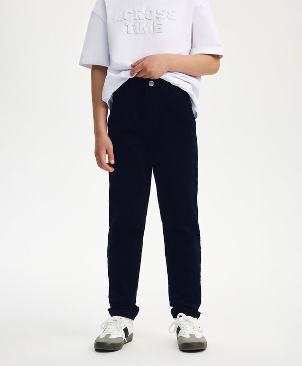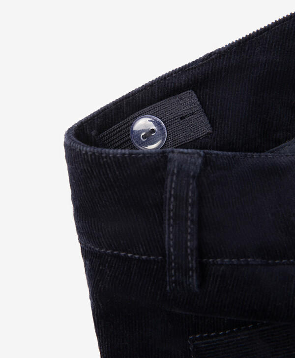 Синие вельветовые брюки прямого кроя – универсальная вещь, которая легко впишется и в повседневный, и в школьный гардероб мальчика. Лаконичный дизайн модели позволяет сочетать вельветовые школьные бр... Показать описаниеюки с любыми рубашками, водолазками, трикотажными пиджаками, создавая гармоничные образы в стиле смарт кэжуал(smart casual). Брюки выполнены из хлопкового вельвета, который обладает мягкой текстурой и высокой износостойкостью. Эластан в составе ткани делает посадку брюк очень удобной для ребенка. Брюки имеют функциональные карманы со скосом на передней части. В оформлении модели использована лаконичная брендированная металлическая табличка. 97% хлопок,3% эластан