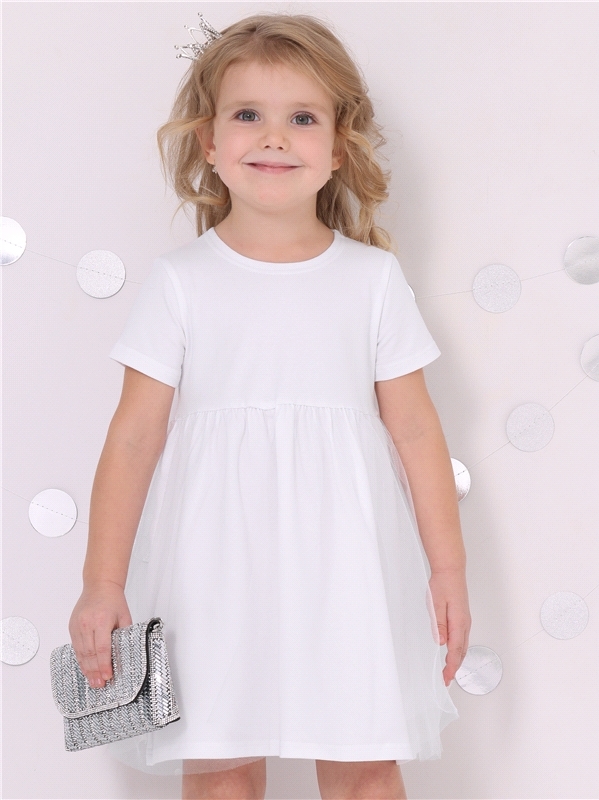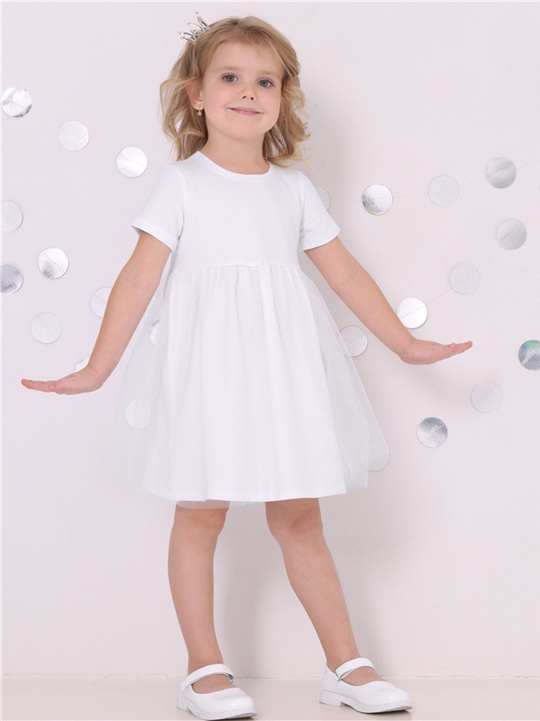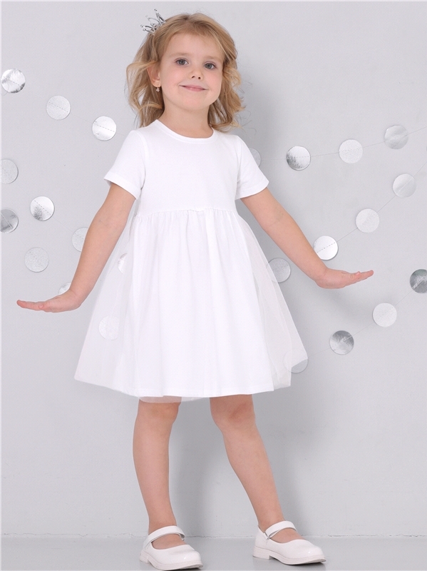 Праздничное платье для девочки выполнено из мягкого хлопкового полотна с лайкрой. Изделие полуприлегающего силуэта, с округлым вырезом горловины и короткими рукавами. Юбка полусолнце продублирована мя... Показать описаниегкой сеточкой. Отличный выбор для праздника для маленьких принцесс! Уход: только деликатная стирка при температуре 40 градусов, без предварительного замачивания. Состав: кулир с лайкрой / хлопок 90% + лайкра 8% + пэ 2%.