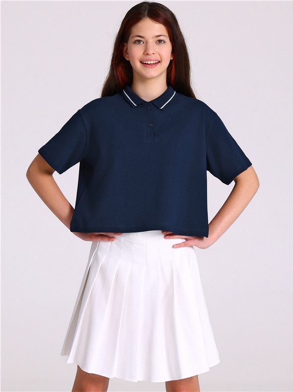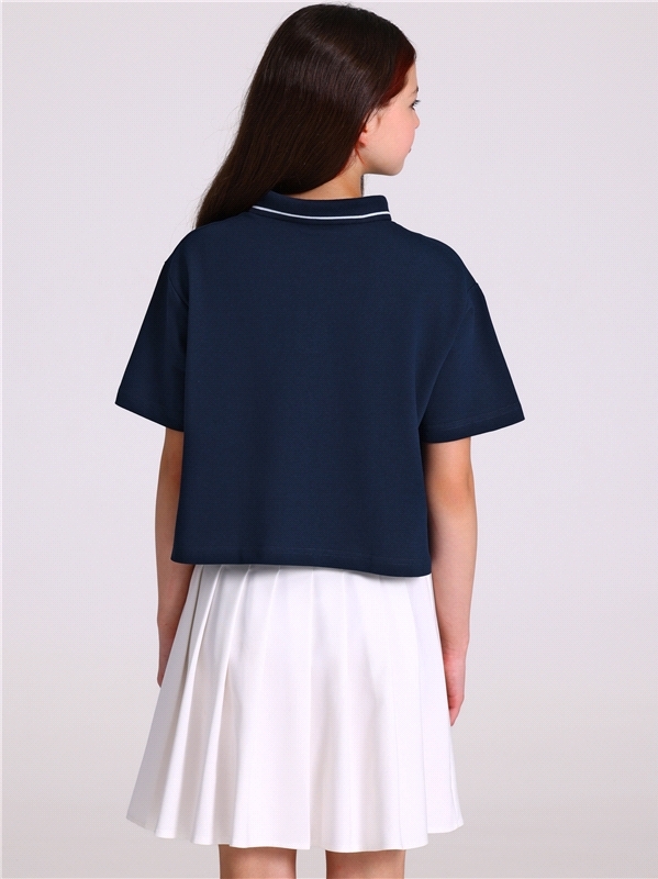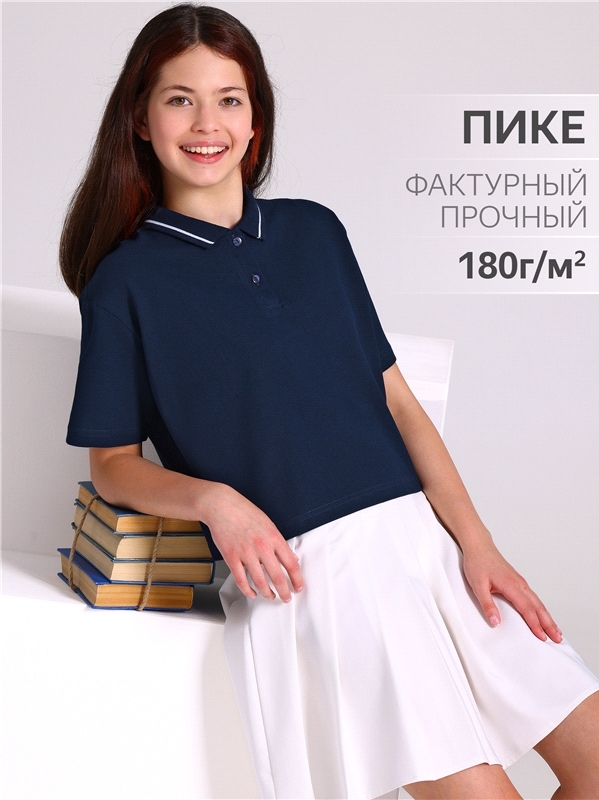 Поло для девочки выполнено из хлопкового полотна. Изделие свободного кроя, со спущенным плечом, короткими рукавами и застежкой на пуговицы. Поло дополнено отложным воротником. Уход: только машинная ст... Показать описаниеирка (руками не стирать!) при температуре 40 градусов, без предварительного замачивания. Состав: пике / хлопок 100%.