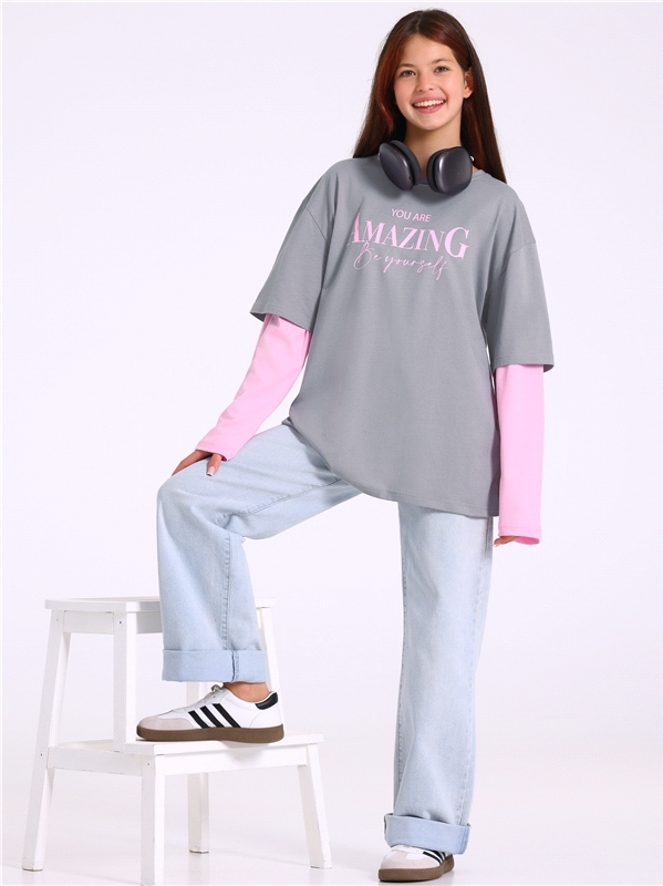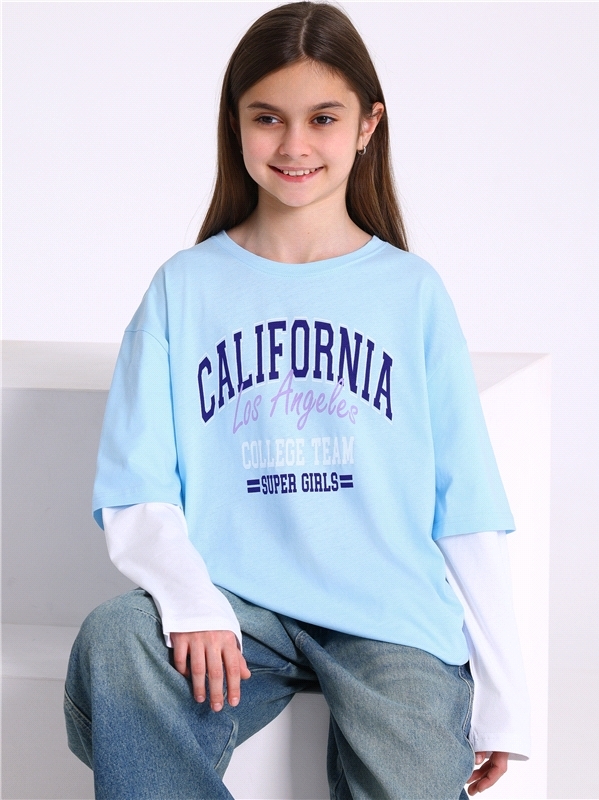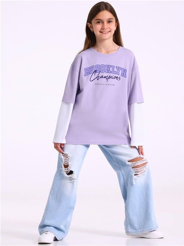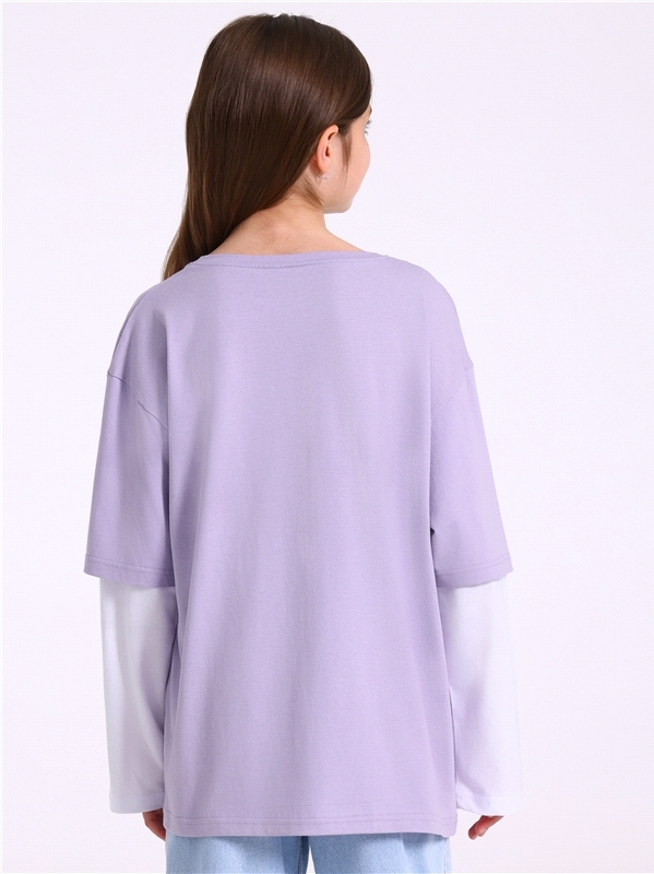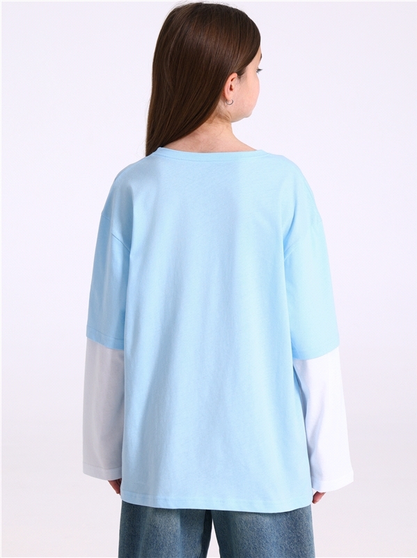 Лонгслив для девочки выполнен из кулира - лёгкого хлопкового полотна. Изделие свободного силуэта, со спущенными плечами и двойными рукавами, Уход: только машинная стирка (руками не стирать!) при темпе... Показать описаниературе 40 градусов, без предварительного замачивания. Изделия с печатью перед стиркой необходимо вывернуть на изнаночную сторону. Состав: кулир / хлопок 100%.