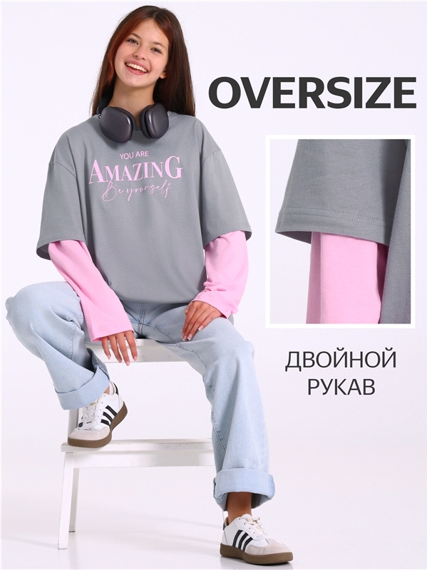 Лонгслив - oversize для девочки выполнен из кулира - тонкого хлопкового полотна. Изделие свободного силуэта, со спущенным плечом и круглым вырезом горловины. Полочка украшена печатью. Уход: только маш... Показать описаниеинная стирка (руками не стирать!) при температуре 40 градусов, без предварительного замачивания. Изделия с печатью перед стиркой необходимо вывернуть на изнаночную сторону. Состав: кулир / хлопок 100%.