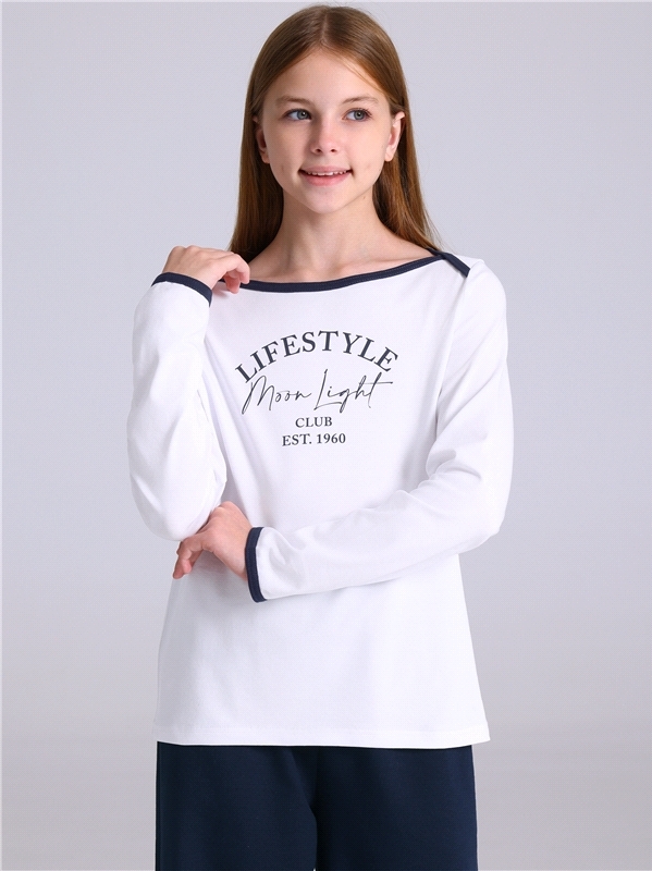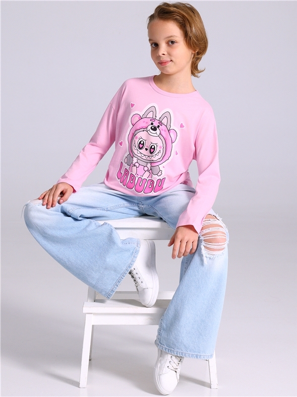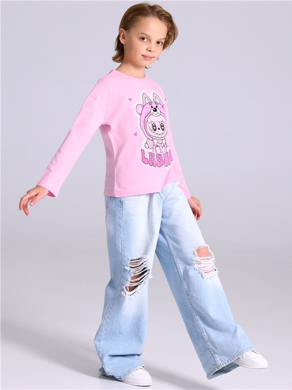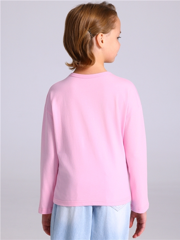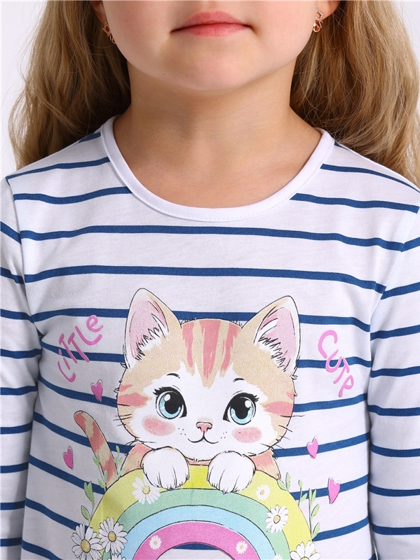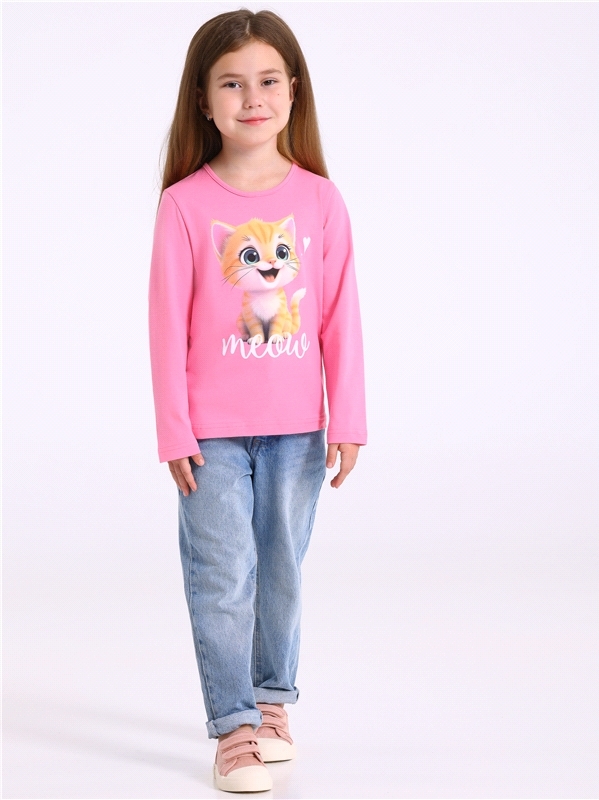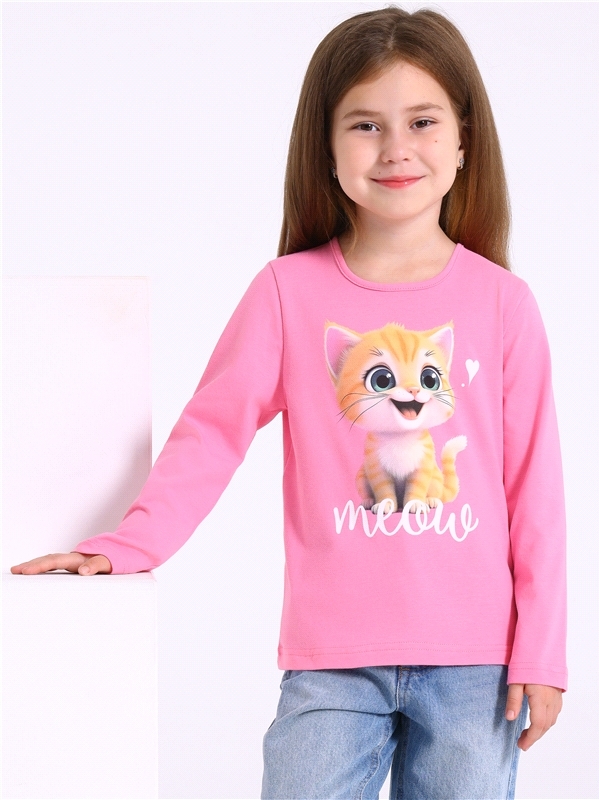 Лонгслив для девочки выполнен из кулира – легкого хлопкового плотна. Изделие прямого силуэта и свободного кроя, с длинными рукавами со спущенной линией плеча, вырез горловины обработан эластичной бейк... Показать описаниеой из полотна компаньона, украшено стильным принтом. Уход: только машинная стирка (руками не стирать!) при температуре 40 градусов, без предварительного замачивания. Изделия с печатью перед стиркой необходимо вывернуть на изнаночную сторону. Состав: кулир / хлопок 100%.