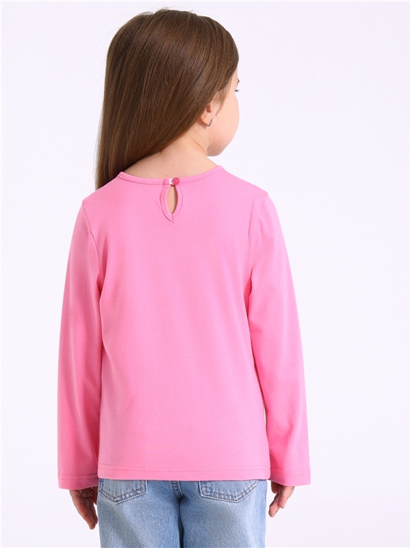 Лонгслив для девочки выполнен из кулира - тонкого хлопкового полотна. Изделие с длинными рукавами, по спинке застегивается на пуговку, украшено печатью. Уход: только машинная стирка (руками не стирать... Показать описание!) при температуре 40 градусов, без предварительного замачивания. Изделия с печатью и декором перед стиркой необходимо вывернуть на изнаночную сторону. Состав: кулир / хлопок 100%.