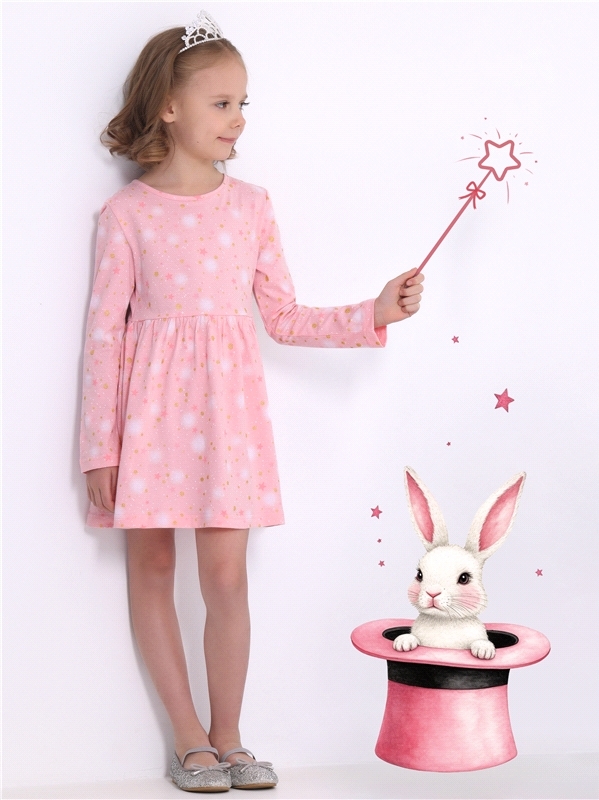 Платье для девочки выполнено из кулира – лёгкого хлопкового полотна. Изделие с длинными рукавами и с присборенной по талии юбочкой, застежка на пуговицу по спинке. Отличный наряд для маленьких принцес... Показать описаниес! Уход: только машинная стирка (руками не стирать!) при температуре 40 градусов, без предварительного замачивания. Состав: кулир / хлопок 100%.