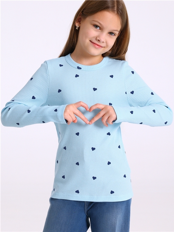 Лонгслив для девочки выполнен из ластика - хлопкового набивного полотна в рубчик. Изделие прямого силуэта, с длинными рукавами и круглым вырезом горловины. Горловина обработана бейкой. Уход: только ма... Показать описаниешинная стирка (руками не стирать!) при температуре 40 градусов, без предварительного замачивания. Состав: ластик / хлопок 100%.