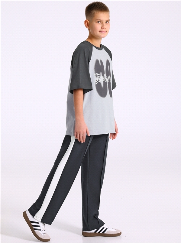 Брюки для мальчика выполнены из футера - тонкого хлопкового полотна с содержанием полиэстера. Изделие прямого силуэта, с лампасами и отстрочкой по середине переда. В боковых швах карманы. Уход: только... Показать описание машинная стирка (руками не стирать!) при температуре 40 градусов, без предварительного замачивания. Ассортимент осенне-зимнего периода. Состав: футер / хлопок 75% + ПЭ 20% + лайкра 5%.