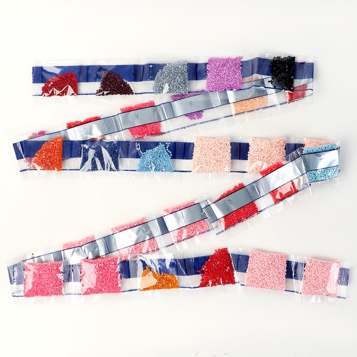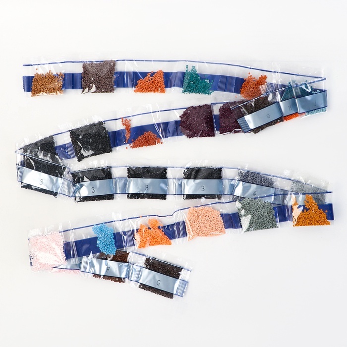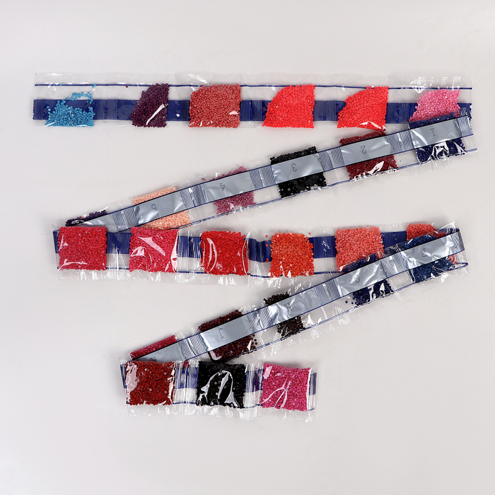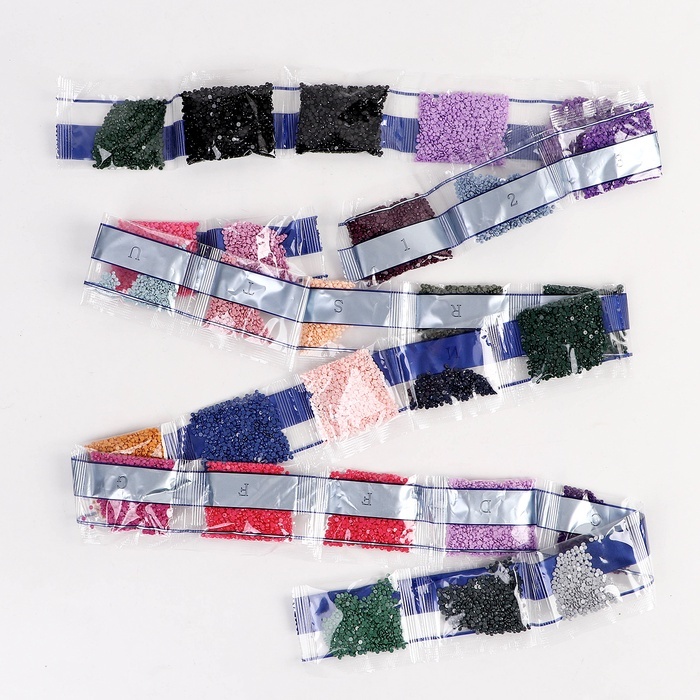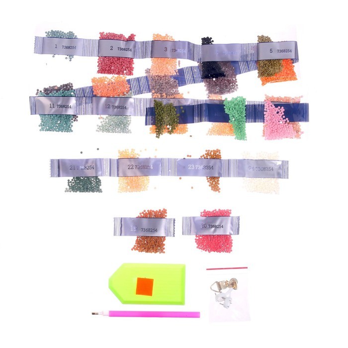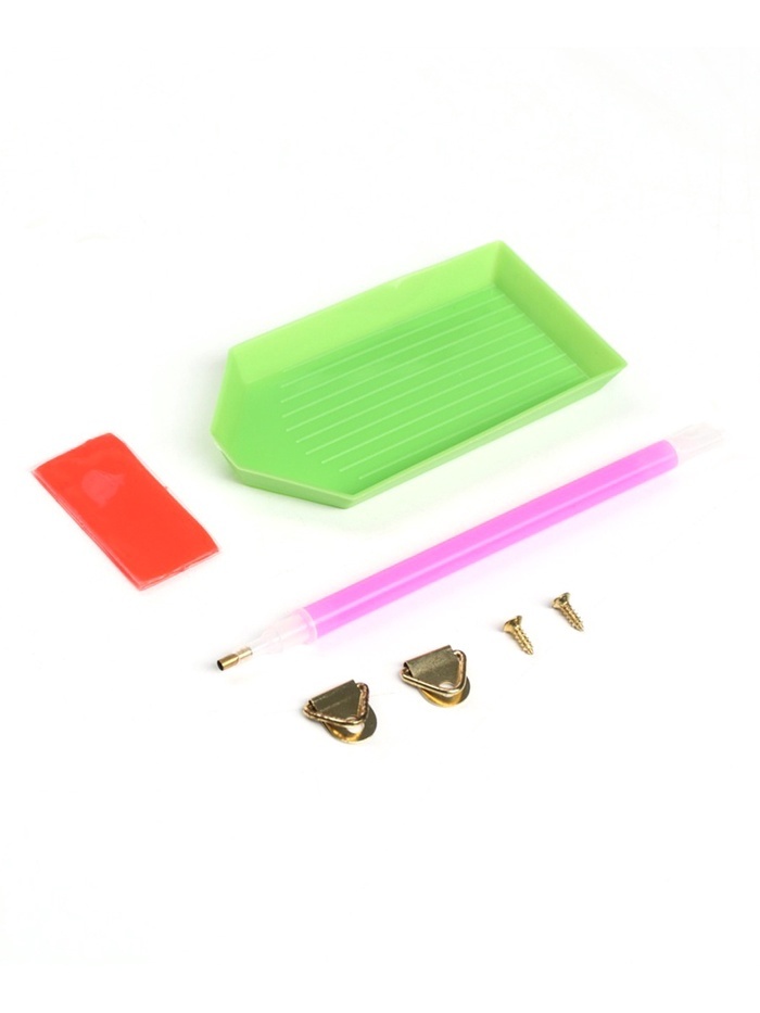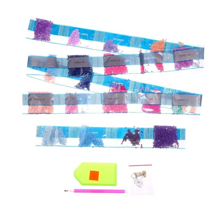 Алмазная мозаика — это отличный способ провести вечер в творческой атмосфере. Готовое изделие украсит интерьер или станет оригинальным подарком. Как работать с мозаикой 1. Для начала откройте небольшо... Показать описанией участок схемы, приподняв и отогнув защитную плёнку. Не открывайте всю схему сразу. 2. Из пакетика с номером, который соответствует схеме, отсыпьте в ёмкость немного стразов. 3. Возьмите специальный карандаш, окуните кончик в клеевую подушечку (розовый квадратик), возьмите страз. Таким образом заполните рисунок. Комплектация * картонная основа-картина; * 5 основ-стикеров; * 2 основы-магнита; * 2 основы-брелока; * стразы; * клеевая подушечка; * поддон для стразов; * специальный карандаш. * карабин; * мальберт;