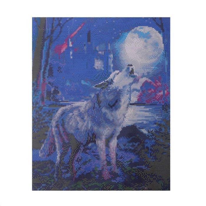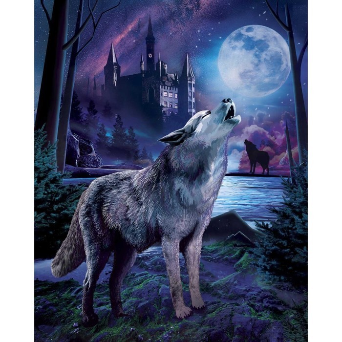 Алмазная мозаика с полным заполнением на подрамнике «Волк в лесу», 40?50 смВопросы по товару