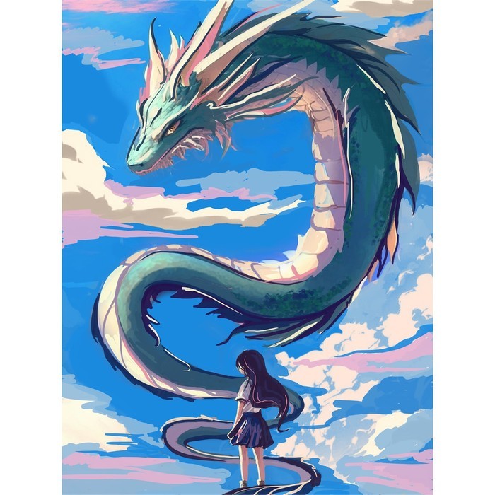 Алмазная вышивка с частичным заполнением на холсте «Девочка и дракон», 30?40 смВопросы по товару