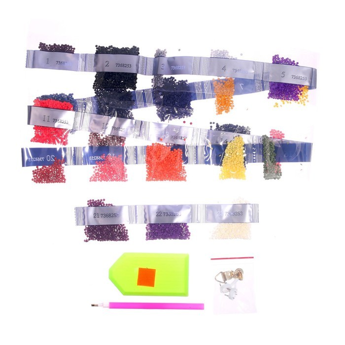 Этот набор позволит создать настоящий шедевр своими руками! Разложите кристаллики с помощью специального карандаша по указанной схеме, заполните всё полотно. Тканевая основа с точечным клеевым покрыти... Показать описаниеем будет надёжно удерживать стразы. На картине уже обозначены необходимые оттенки. Отдельно вас порадует то, что все цвета схемы расположены рядом с рабочей областью холста. А это значит, что схема всегда будет под рукой! Для того, чтобы натянуть готовую картину на подрамник или вставить в раму, у холста предусмотрена дополнительная тканевая область. Алмазная вышивка с полным заполнением - это отличный способ провести вечер в творческой атмосфере. Готовое изделие украсит интерьер или станет оригинальным подарком. Комплектация * холст со схемой; * стразы; * поддон для стразов; * специальный карандаш; * клеевая подушечка.