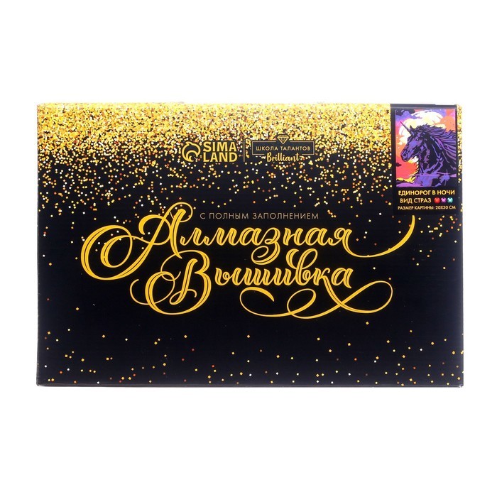 Алмазная мозаика с полным заполнением на подрамнике «Единорог в ночи», 20?30 смВопросы по товару