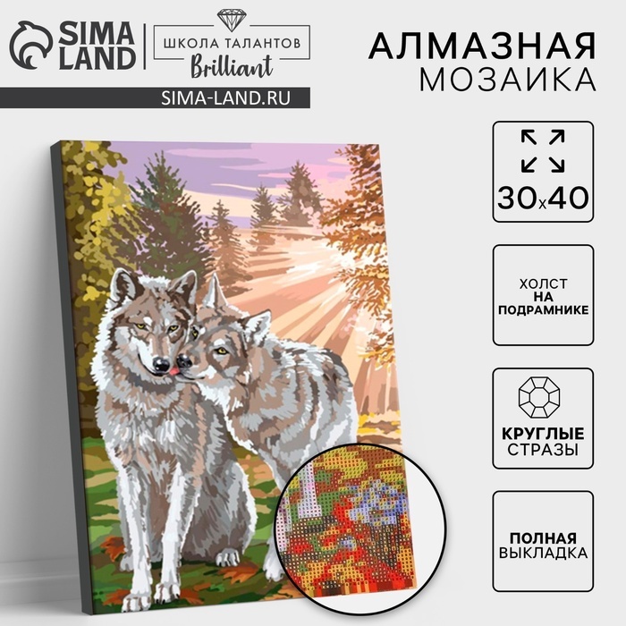 Алмазная мозаика с полным заполнением на подрамнике «Волки», 30?40 смВопросы по товару