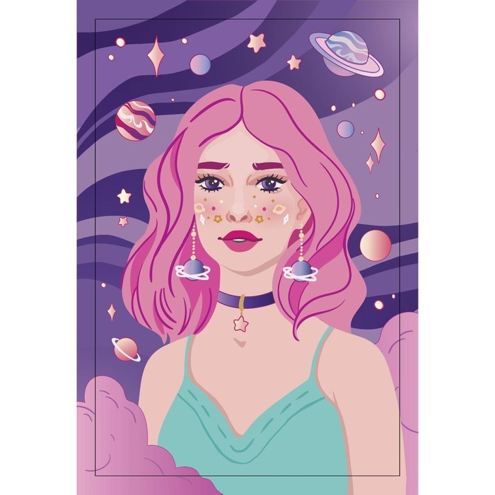 Алмазная мозаика с полным заполнением на подрамнике «Космическая девушка», 20?30 смВопросы по товару