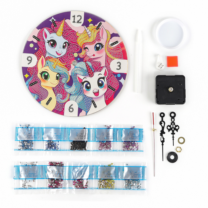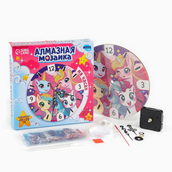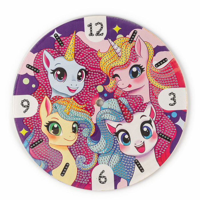 Алмазная мозаика для детей с частичным заполнением на часах «Единорожки», 20?20 смВопросы по товару