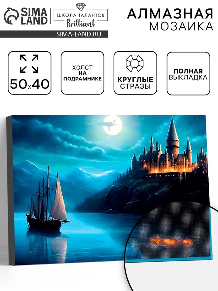Алмазная вышивка полное заполнение «Сказочный замок», на раме, 40?50 смВопросы по товару