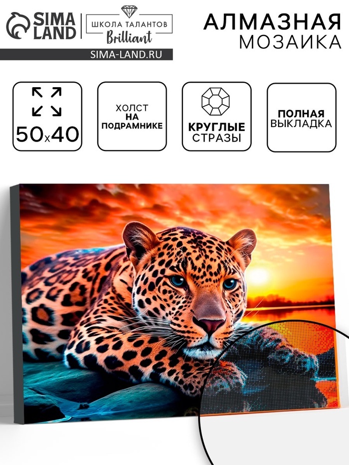 Алмазная вышивка полное заполнение «Гепард», на раме, 40?50 смВопросы по товару